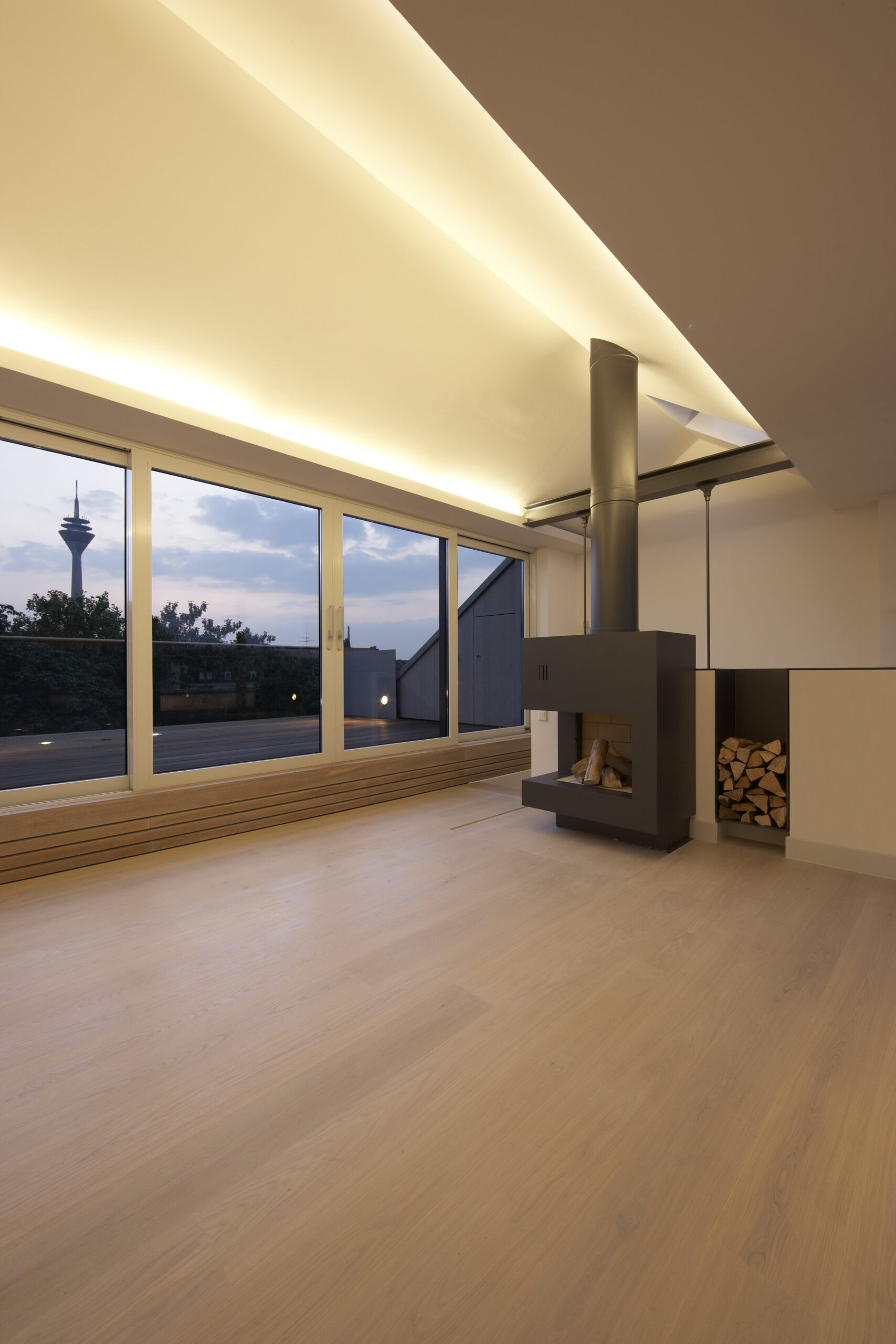 Hier wurde ein ungenutztes Dachgeschoss in einen großzügigen und lichtdurchfluteten Wohnraum transformiert. Durch den gezielten Ausbau und eine intelligente Grundrissoptimierung entstand ein modernes Wohnkonzept über den Dächern der Stadt. Große Fensterfronten und eine klare Linienführung prägen das offene Ambiente und schaffen eine fließende Verbindung zwischen den verschiedenen Wohnbereichen. Hochwertige Materialien und maßgeschneiderte Details unterstreichen den exklusiven Charakter dieser urbanen Dachgeschosswohnung. Das Ergebnis ist ein gelungenes Beispiel für Nachverdichtung, welches den höchsten architektonischen Ansprüchen an Ästhetik und Wohnkomfort gerecht wird.