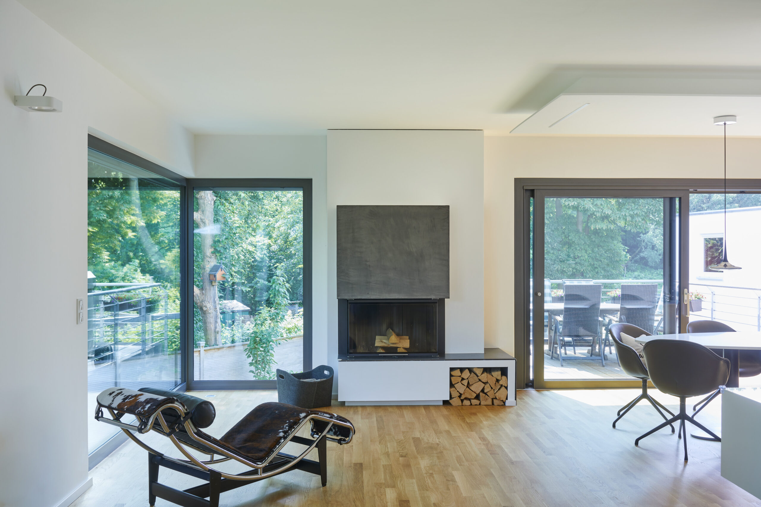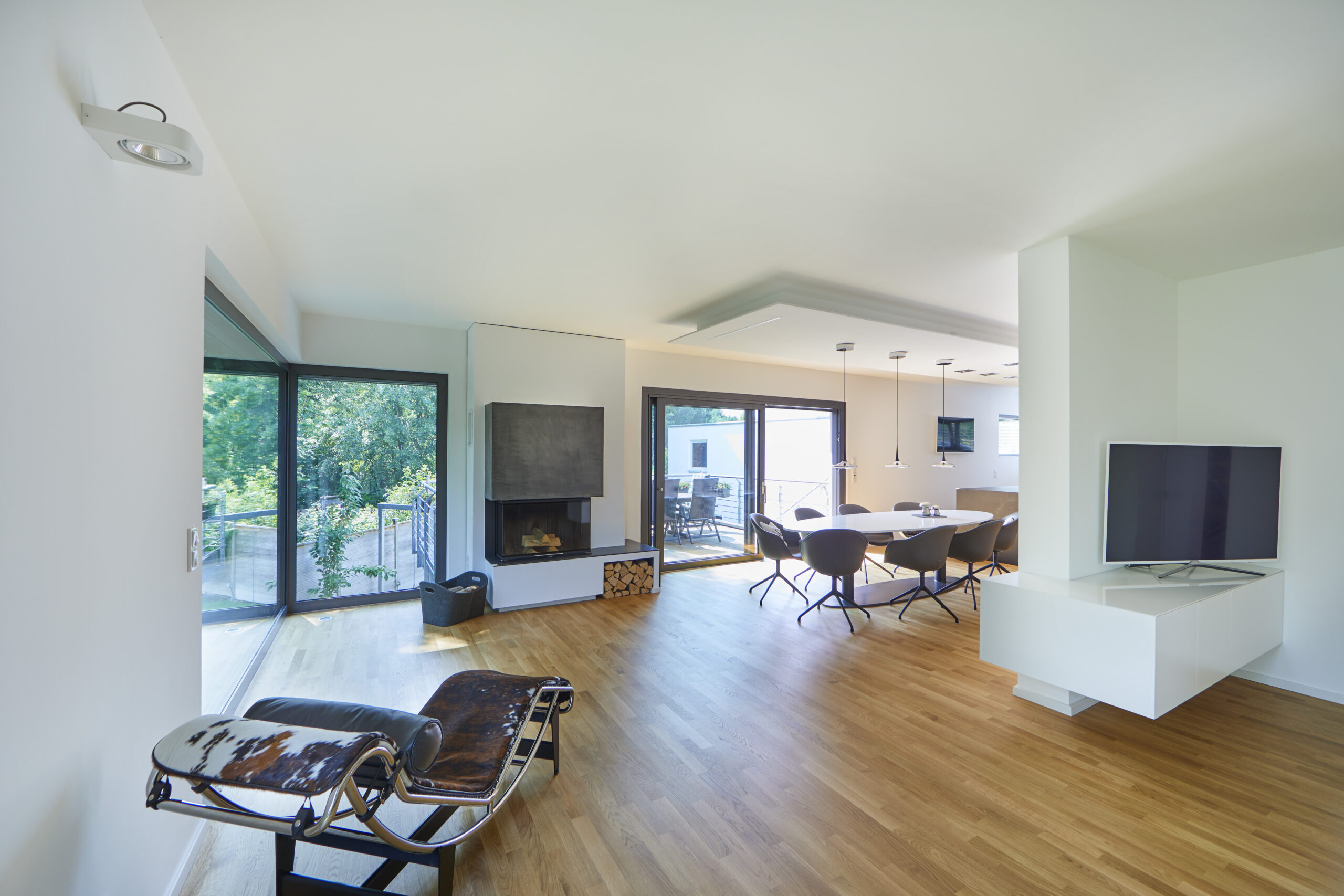 Das Haus ist großzügig gestaltet; die eingesetzten Materialien und die Einrichtung sind auf das Wesentliche reduziert, jedoch von hoher Qualität.