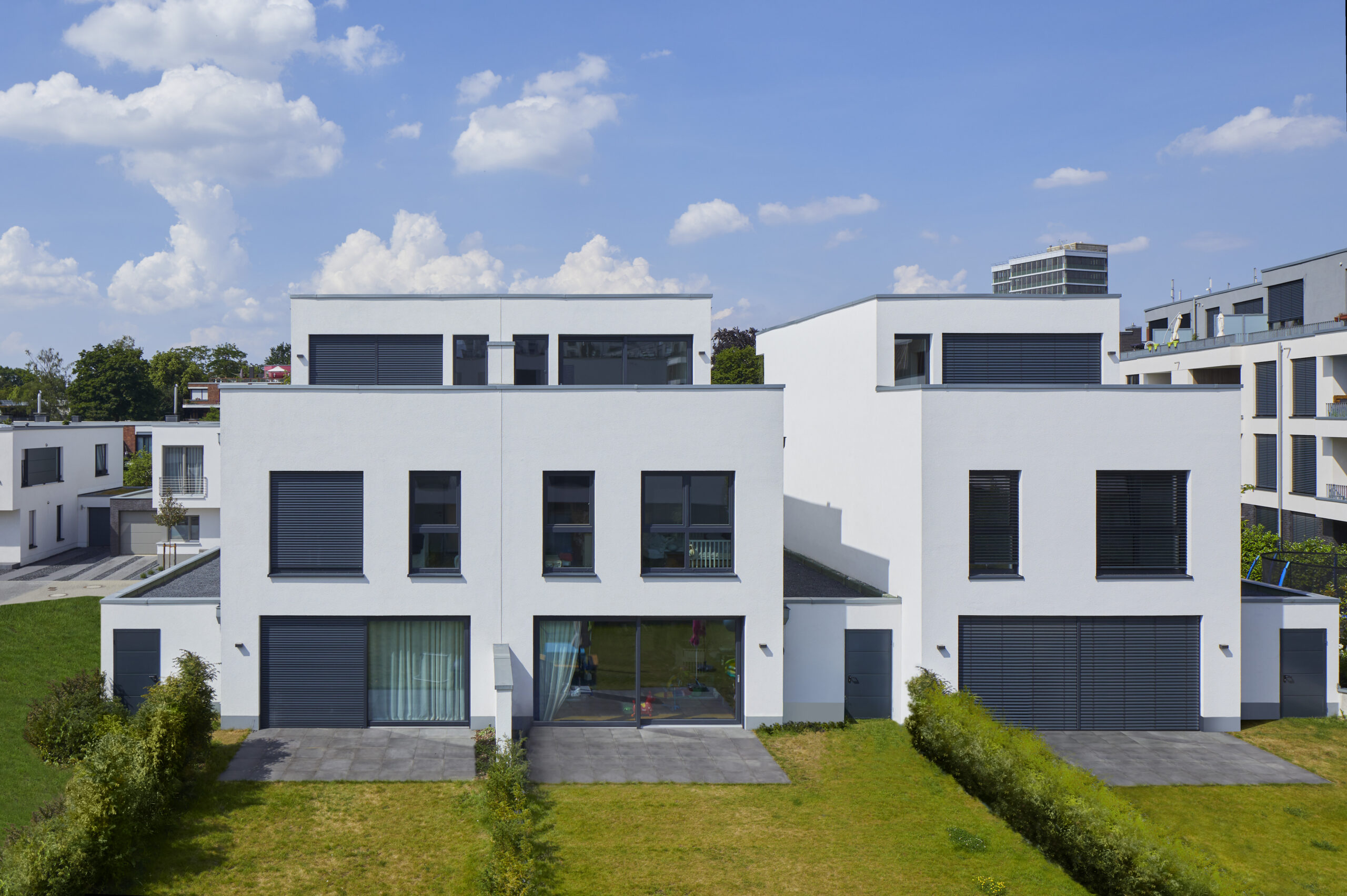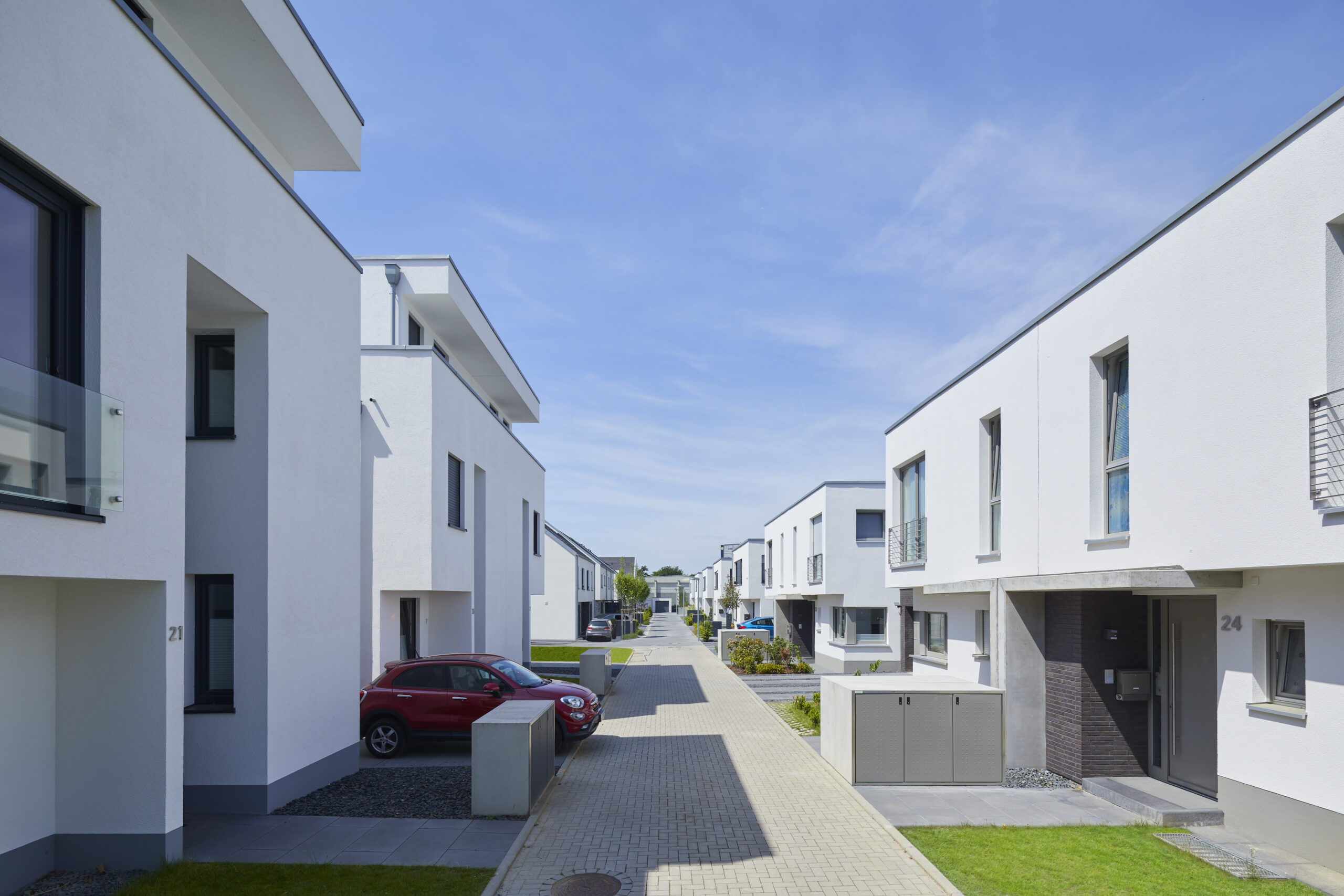 In einem Neubaugebiet des Düsseldorfer Nordens entstanden acht Wohnhäuser in einer neu errichteten Stichstraße. Die kleine Wohnstraße wurde durch die Errichtung der Wohnbebauung zum städtebaulichen Raum. Dieses Projekt besticht mit großzügigen, lichtdurchfluteten Räumen in einer klaren Architektursprache.